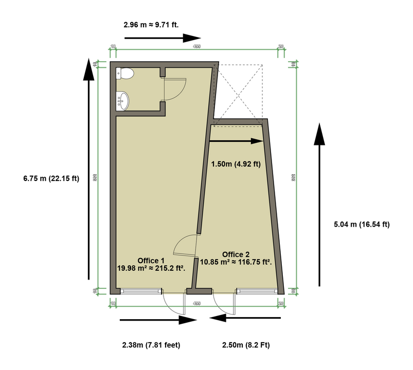 A compact and versatile commercial unit measuring approximately 30.85 m² (332.1 sq ft), ideal for a variety of uses including office space, consulting room, small studio, or a boutique retail shop.